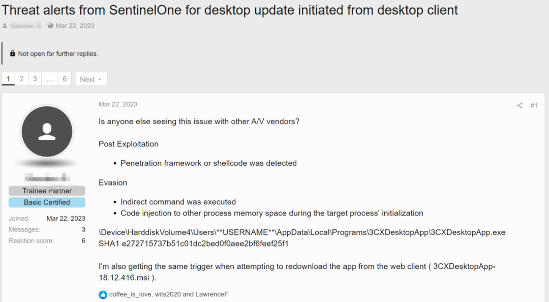 凌晨一点,部分用户反馈3CXDesktopApp自动更新的版本被杀毒软件告警。此时部分用户还将其定性为误报。