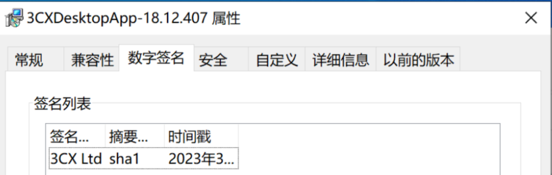 安装程序具有合法签名,安装后的3CXDesktopApp启动时会主动加载安装目录下没有签名的ffmpeg.dll。