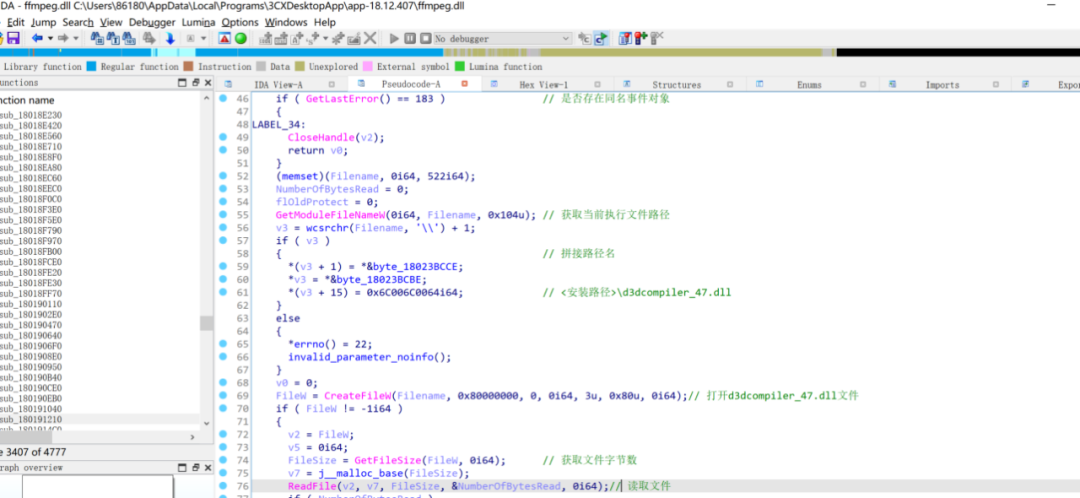 首先打开安装路径下的d3dcompiler_47.dll文件,并读入内存。