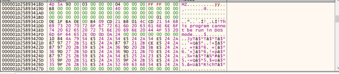 如下图所示,shellcode由8字节\xFE\xED\xFA\xCE\xFE\xED\xFA\xCE定位,后续0x43B08字节为其shellcode。