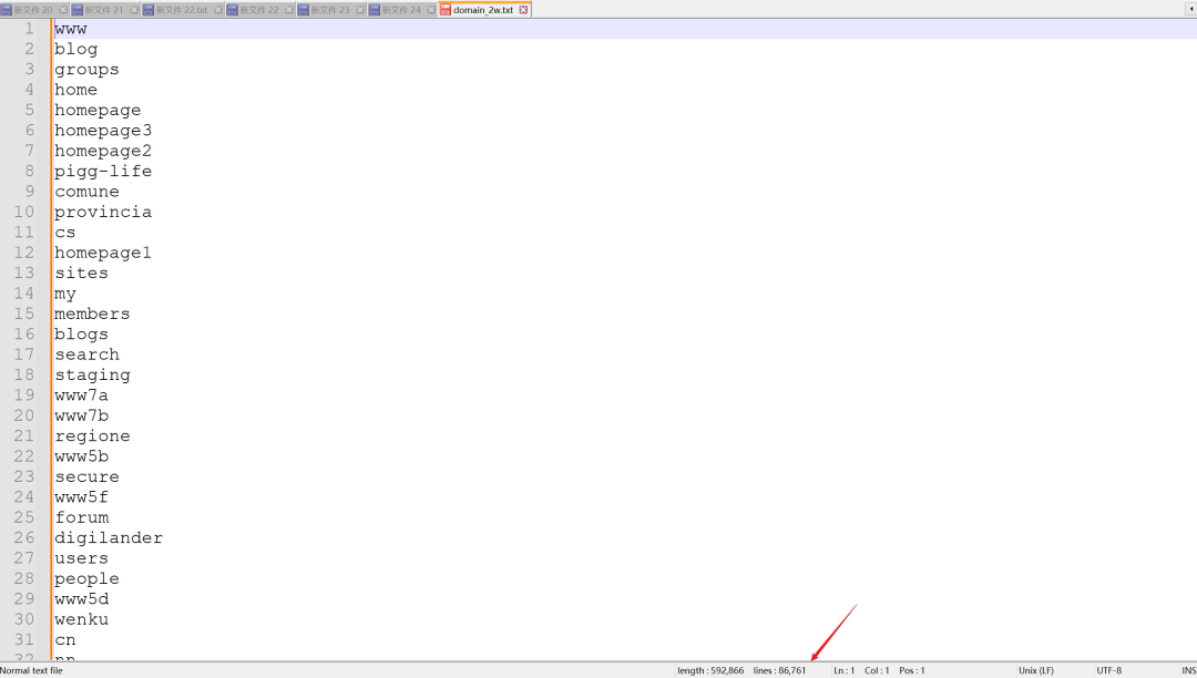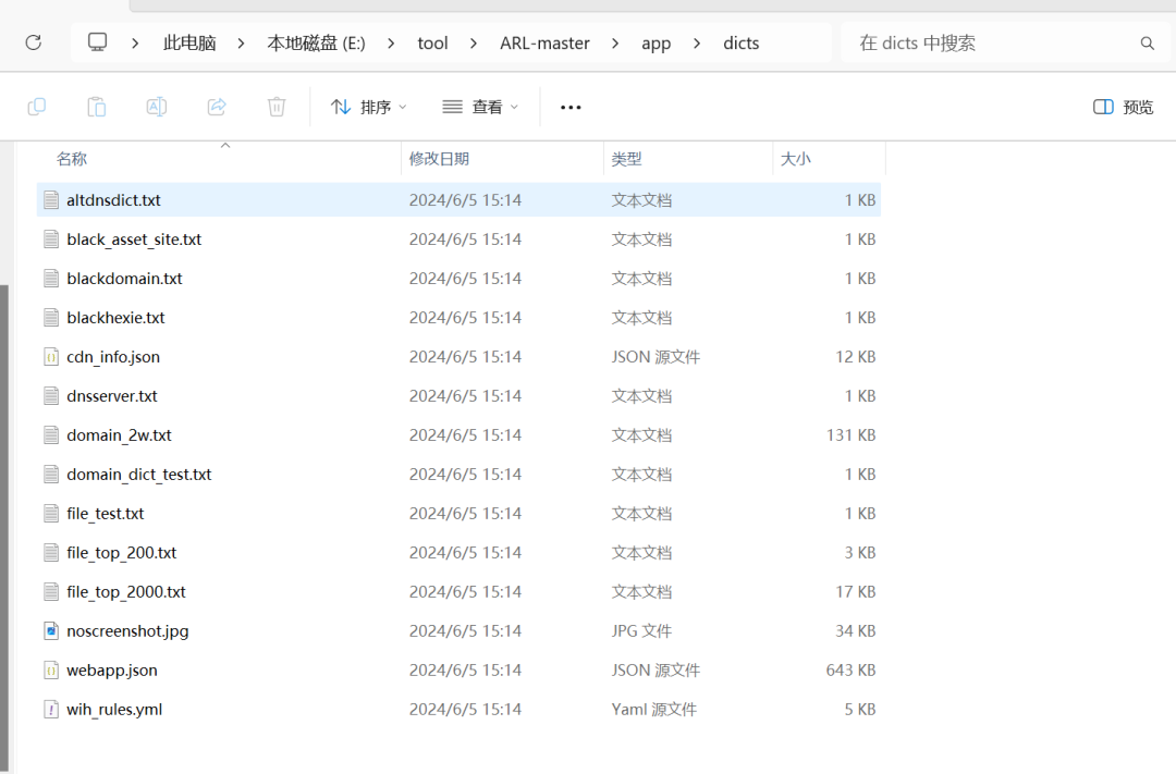 ARL的app/dicts目录下放着子域名字典和一些文件扫描,可以自己对这些字典文件进行修改扩充,这里我们加强一下子域名字典。