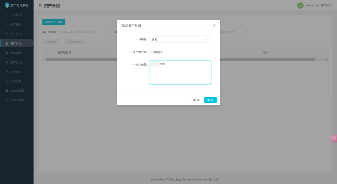 先创建一个要扫描的资产分组。