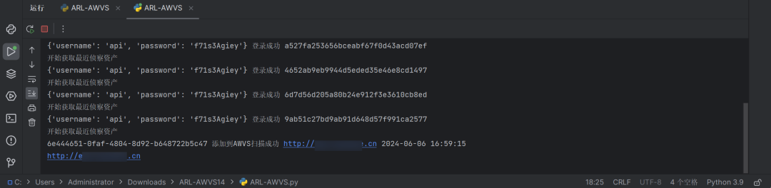 运行脚本,开始循环监测,ARL新增资产后会进行扫描。
