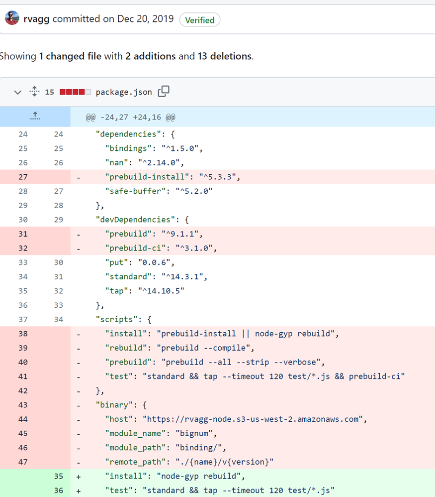 该功能并无漏洞,攻击行为的产生在于2019年10月20日的新版本v0.13.1的bignum弃用了该预构建方法。而其在今年删除了持有的S3 Bucket,导致恶意第三方接管了该Bucket,因而旧版本的bignum会从该Bucket下载恶意软件。