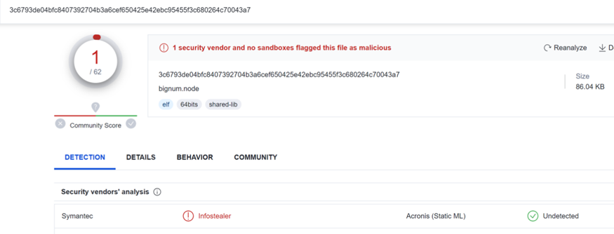 并且,从上文Virustotal的检出结果可以看出,对于此次的造成信息泄露的恶意文件62家杀毒软件只有一家能检出,该原因可能在于恶意软件并没有对敏感文件的信息进行窃取。但是如若恶意文件具有更完备的功能以及免杀手段,那么用户对于开源包的信任也可能导致攻击行为的落地。