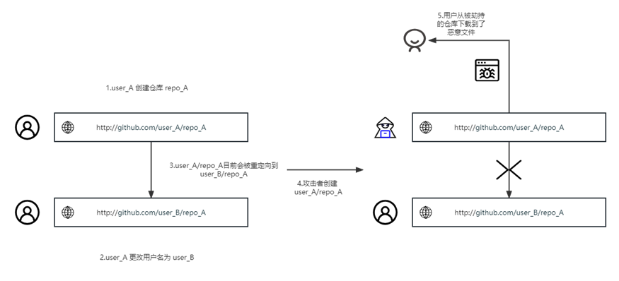 RepoJacking攻击源于部分安装脚本对软件的安装使用的是GitHub仓库的命名空间进行下载,而在命名空间的所有者更名或是删除后,该命名空间会被攻击者劫持。