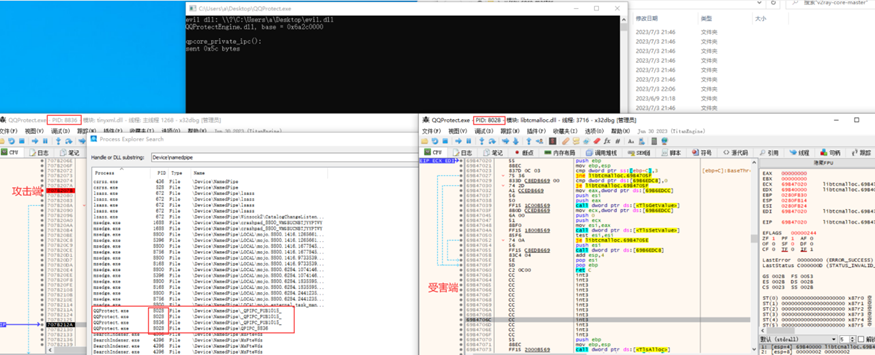 最后再次向命名管道写入数据使得QQProtect.exe加载了evil.dll文件。