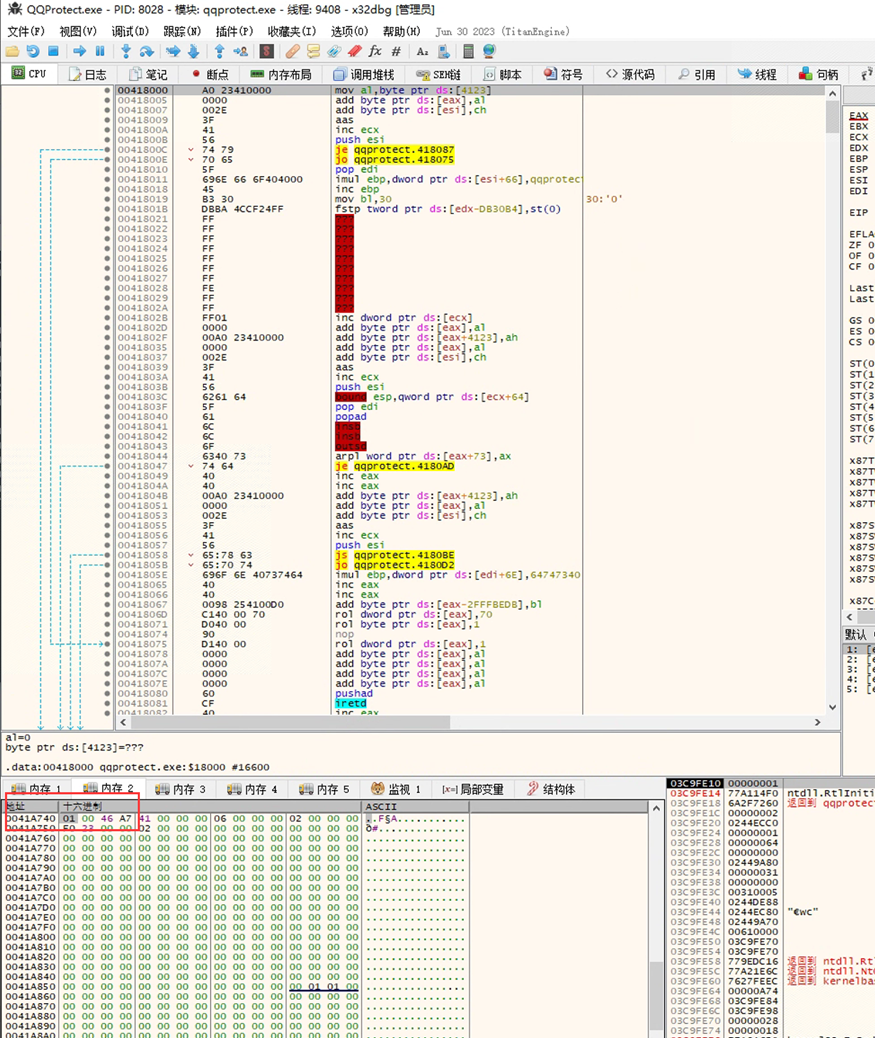 该段代码存在于函数sub_40C950内。函数sub_40C950会在QQProtect.exe执行时作为QPCore的回调函数。