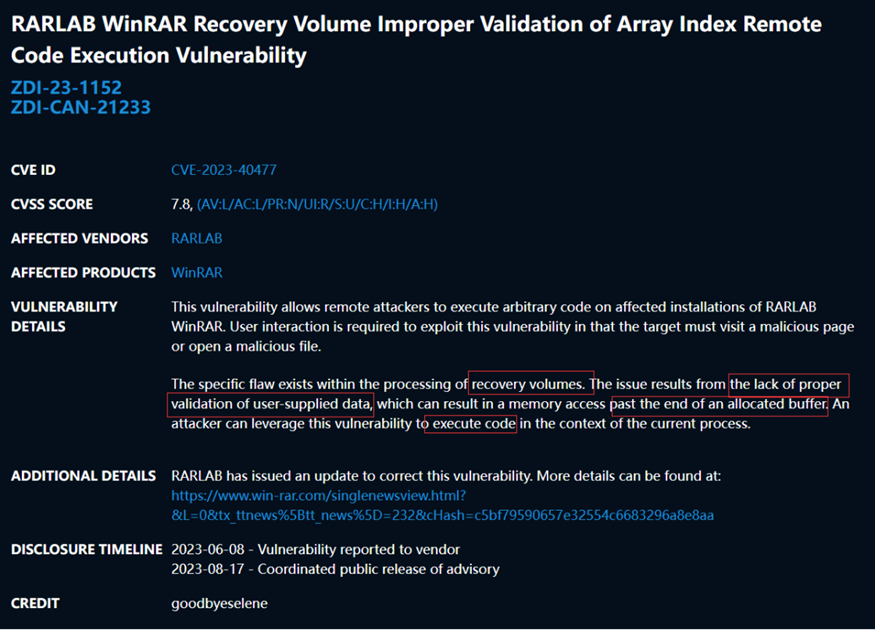 Winrar RCE漏洞(CVE-2023-40477)分析报告