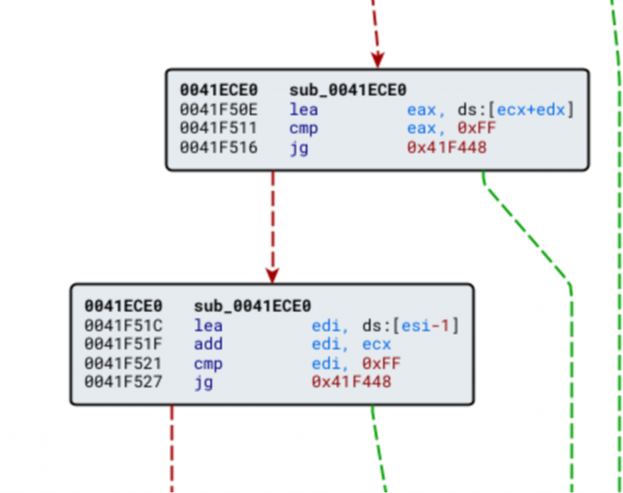 发现添加了与0xFF大小的检测,大于就跳出,这很像对溢出的检测。