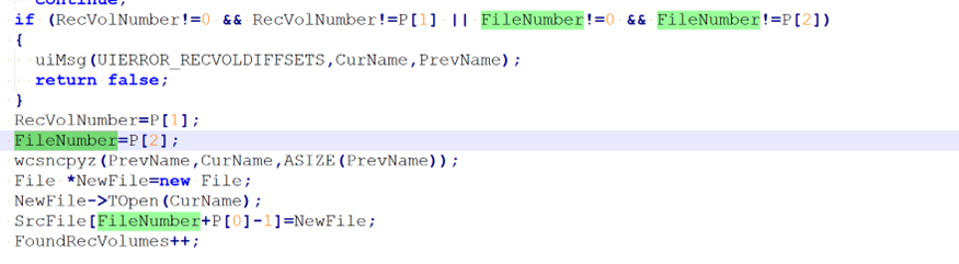 IDA反编译Unrar.exe。发现Unrar.exe的代码与recvol3.cpp文件的代码可以对应上